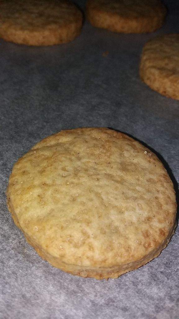 Etaler entre 2 feuilles de papier cuisson sur une épaisseur de 4 à 5 mm. Placer au frais pour environ 1 h 30 puis enfin découper des cercles à l'emporte pièce ou à l'aide d'un verre.